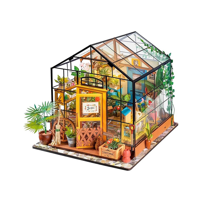 این محصول یک کیت مونتاژ دستی است که شامل تمام قطعات مورد نیاز برای ساخت گلخانهی کتی است. شما باید قطعات چوبی را ببُرید، بچسبانید، رنگ بزنید و بهآرامی فضای مینیاتوریتان را خلق کنید. روند ساخت آن نهتنها سرگرمکننده، بلکه نوعی مدیتیشن محسوب میشود؛ تمرکزی که هنگام سر هم کردن این دنیای کوچک دارید، بهطور طبیعی ذهن را آرام و از دغدغههای روزانه دور میکند.
