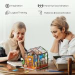 تمام قطعات این کیت با دقت بالا و از متریال باکیفیت ساخته شدهاند؛ چوب، کاغذ، پارچه، سیم، پلاستیک و حتی لامپ کوچک برای نورپردازی گلخانه. راهنمای کامل و تصویری نیز در جعبه موجود است تا مرحله به مرحله همراهتان باشد و شما را در ساخت درست و تمیز هدایت کند.
