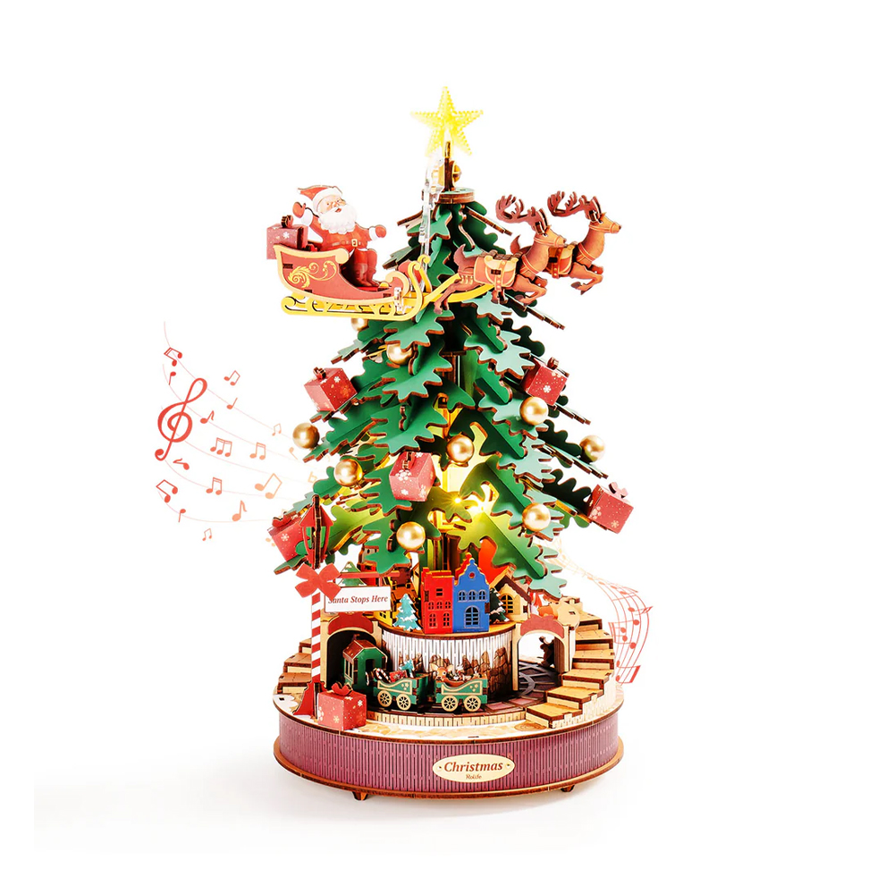 این مدل از 319 قطعهی چوبی دقیق ساخته شده و همانند سایر محصولات برند Rolife، بدون نیاز به چسب مونتاژ میشود. در قلب این سازه، جعبهی موسیقی مکانیکی قرار دارد که هنگام چرخش درخت، چهار آهنگ کلاسیک کریسمسی از جمله “Deck the Halls” و “Jingle Bells” را پخش میکند.